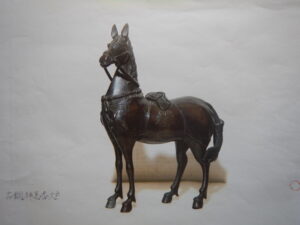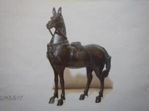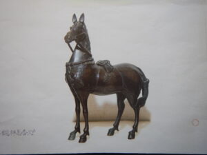 古銅神馬香爐・江戸時代 - Category - その他 神馬とは、神の乗御に供する意で神社に奉納する馬。「神馬」・「しんめ」。 神馬は、神様が騎上する馬として神聖視された最も優れた馬である。 日本の神社に奉献され、祭事の際に登場する馬を指す。 寸法 体高耳まで、28・5㎝ 体長 22㎝ こちらの商品・金額等についてのお問い合わせは、お電話にて承っております。 TEL:090-2827-3605(津木)までお問い合わせください。
